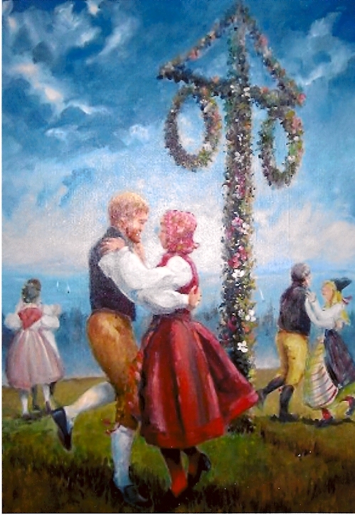 In modern Sweden, Midsummer's Eve and Midsummer's Day (Midsommarafton and Midsommardagen) were formerly celebrated on 23 June and 24 June, but since 1953 the celebration has been moved to the Friday and Saturday between 19 June and 26 June. It is one of the most important holidays of the year in Sweden, and probably the most uniquely Swedish in the way it is celebrated. The main celebrations take place on the Friday, and the traditional events include raising and dancing around a huge maypole. Before the maypole is raised, greens and flowers are collected and used to cover the entire pole. Raising and dancing around a maypole (majstång or midsommarstång) is an activity that attracts families and many others. People dancing around the pole listen to traditional music and some even wear traditional folk costumes. In addition, many wear crowns made of wild springs and wildflowers on their heads. The year's first potatoes, Soused herring, Chives, Sour Cream, Beer, Snaps and the first strawberries of the season are on the menu. Drinking songsSnapsvisor are also important at this feast, and many drink heavily. When Sweden got its National day (6 June), discussions were held about making Midsummer the Swedish national day because of the strong civil celebration on this day. Because Midsummer was thought to be one of the times of the year when magic was strongest, it was considered a good night to perform rituals to look into the future. Traditionally, young people pick bouquets of seven or nine different flowers and put them under their pillow in the hope of dreaming about their future spouse. In the past it was believed that herbs picked at Midsummer were highly potent, and water from springs could bring good health. Greenery placed over houses and barns were supposed to bring good fortune and health to people and livestock; this old tradition of decorating with greens continues, even though most don't take it seriously. To decorate with greens was called att maja (to may) and may be the origin of the word majstång, maja coming originally from the month May. Other researchers say the term came from German merchants who raised the maypole in June because the Swedish climate made it impossible to find the necessary greens and flowers in May, and continued to call it a maypole. Today, however, it is most commonly called a "midsommarstång" (literally midsummer's pole).